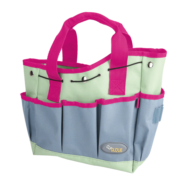 The ClipGlove soft tool bag is a canvas tool bag with multi pockets, making it ideal for storing tools and gardening accessories. This tool bag is packed full of features such as a comfortable rolled handle and internal pockets to keep accessories organised. If tools are being stored they can be kept in place with the elastic cord. The bag is constructed with 600D polyester fabric, includes a useful pen pocket and like all ClipGlove products the handy carabiner clip – perfect for attaching ClipGloves!