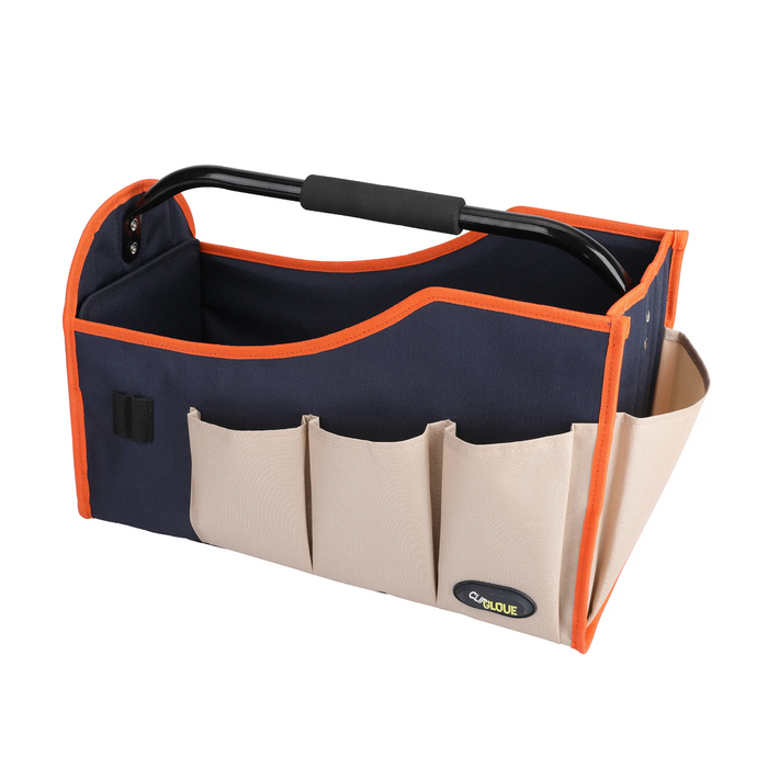 The ClipGlove Rigid Tool Bag is a large tool bag like no other! It is constructed using durable 600D polyester fabric with robust reinforcement. Organising tools and accessories has never been easier with the multi pockets and internal sections. Whilst tough and rigid, this clever gag can quickly fold for storage when not in use. The comfortable tubular handle keeps the bag open, making items accessible at all times. Useful pen pockets and the handy carabiner clip make this canvas bag for tools super user-friendly, the ultimate garden bag!