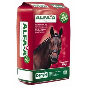 Dengie Alfa-A Oil provides the same amount of slow release energy compared to a conditioning or competition mix, but it contains 10 times less starch. This makes it suitable for horses prone to digestive upsets, or those that behave erratically after feeding. Alfalfa used in this mix has been dried at a very high temperature, this reduces the risk of mould dramatically & the extraction processes mean a low dust content is consistent through the range.