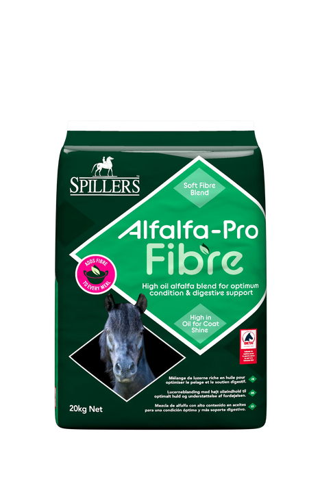 Spillers Alfalfa-Pro Fibre. Soft, alfalfa blend ideal for feeding alongside compound feeds and balancers. High in oil to enhance coat shine and provide slow release energy for optimum condition. Includes short chopped alfalfa, rich in quality protein and bioavailable calcium to extend eating time and provide a natural buffer to stomach acid. Low in sugar and starch to support digestive health and reduce the risk of excitability. Ideal for horses and ponies prone to gastric ulcers. With added vitamin E, the most important antioxidant, to balance the high oil content.