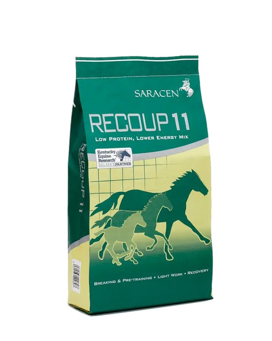Saracen Recoup 11 is a highly palatable sweetfeed that is suitable for horses during pretraining or when getting them back from a break from training or injury. Saracen Recoup 11 is suitable for convalescence and light exercise & for weaning horses onto a higher energy feed. This formula utilises oils & digestible fibres as stable forms of energy which can help maintain body condition whilst increasing their workload.