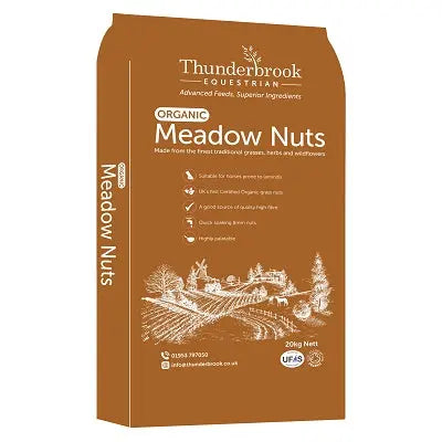 Thunderbrook Organic Meadow Nuts. A Complementary forage feed for horses. Low in sugar and starch with a high fibre content.