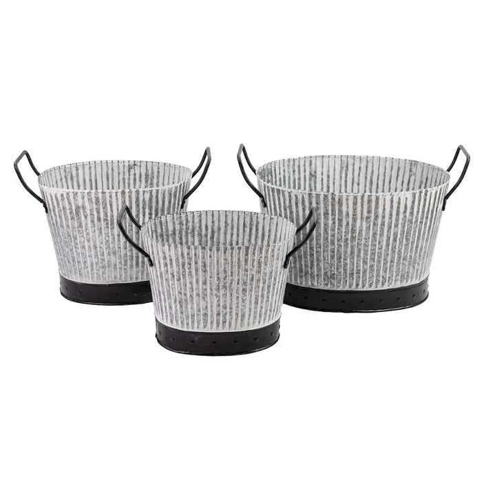 RIBBED PLANTER - SET OF 3 - ANTIQUE Galvanised