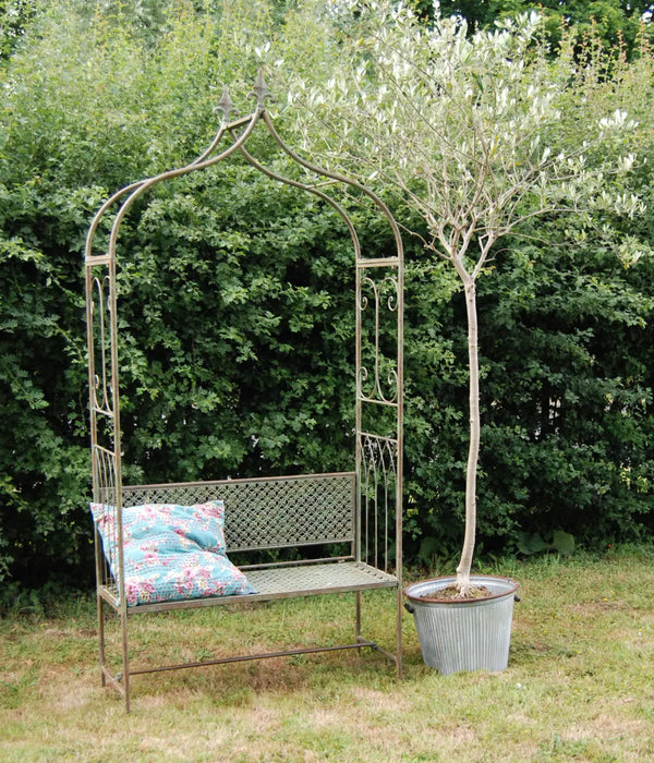 The popular Marlborough Arbour in pewter is characterised by its delicate latticework and complementary floral motif. This stunning arbour is a beautiful addition to any garden space and comes flat-packed for convenient storage.