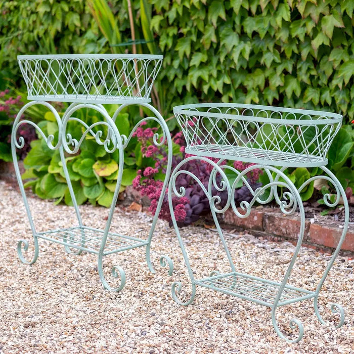 WIRE PLANTER WITH STAND - SET OF 2 - GREEN