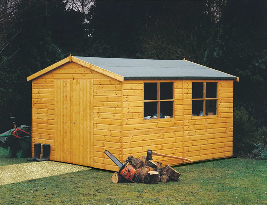 The Bison is a high quality hand made workshop and every feature sets the building apart from others. The framing is a mighty 70x44mm (3"x2"), significantly larger than even our standard framing giving the building immense strength. The doors are fully framed and braced and they are fitted with a full length piano hinge for added security. A lock and key is also provided. The high grade 12mm shiplap cladding provides much improved weather proofing and longevity. The internal working height is a minimum of 6 feet at the eaves giving a really comfortable working environment for the vast majority of people; again this is significantly higher than much of the cheaper competition.