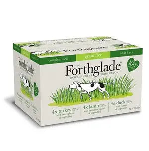 Forthglade Grain Free Adult Dog Variety features all three delicious flavours all of which are free from artificial nasties & use only the best cuts of meat to provide the dogs with the best meal possible. All three of the formulas utilise salmon oil & seaweed which do a great job of improving overall condition as well as skin & coat health. Glucosamine & chondroitin have also been included as they provide the building blocks for solid joint structures.
