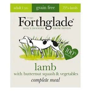 Forthglade Complete Grain Free Lamb with Butternut Squash & Vegetables Adult Dog Food. Free from artificial colours, flavours & preservatives our grain free lamb recipe is packed with natural goodness for your dog. We’ve used healthy carbohydrate rich vegetables including butternut squash, carrots & peas in place of grains alongside 75% lamb to make sure your dog gets the nutrition they need from their meal.