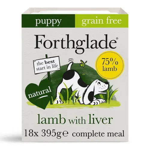 Forthglade Complete Grain Free Puppy Lamb with Liver & Veg. Tailor made for puppies. From salmon oil, a great source of omega 3 to supports brain development. Made from high levels of chondroitin and glucosamine for healthy joints & bones. Recipes include prebiotic chicory root extract to aid healthy digestion. Each recipe contains 75% good quality protein (meat or fish). Designed for high energy pups! Forthglade complete meals are tailored for your growing puppies aged 2 to 12 months. Forthglade take good quality ingredients, and add vitamins, oils and minerals to give your puppy the best start in life. Available in grain free recipes for sensitive tummies or wholegrain recipes for easy digestion. Forthglade has a purpose built factory in the heart of Dartmoor, Devon to provide your pups with wholesome, high quality food. Tailor made puppy wet food recipes from Forthglade HQ in Devon