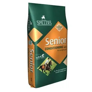 Spillers Senior Conditioning Mix contains extra calories and protein making it ideal for active senior horses or those that require more topline and condition. Includes small pellets to help make it easier to chew for horses and ponies with poor teeth. Contains glucosamine to help support joint health. Spillers Senior Conditioning Mix contains: Digestible Energy 12.2MJ/kg Oil 5% Protein 14% Fibre 10% Starch 25% Vitamin A 12,500iu/kg Vitamin D 1,500iu/kg Vitamin E 250iu/kg Selenium 0.3mg/kg Copper 30mg/kg Zinc 100mg/kg