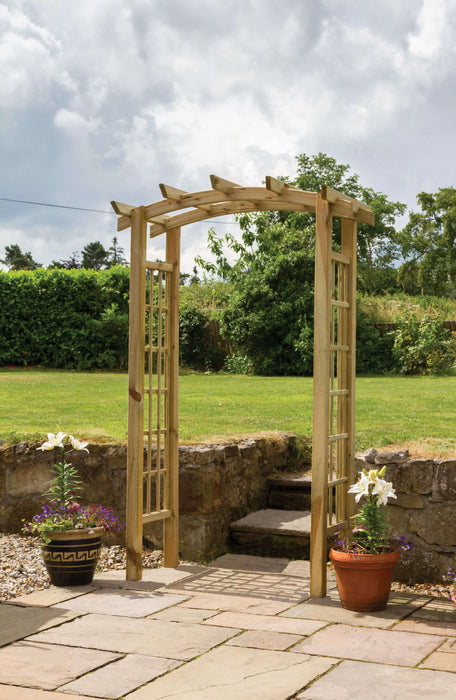One of the most popular arches in the Zest 4 Leisure collection, the Moonlight Arch encompasses a subtly curved rafter with delicate square trellis side panels. Standing at 2.23m, the arch's natural wood will enhance your garden walkway and has an adjustable width of up to 1.34m.