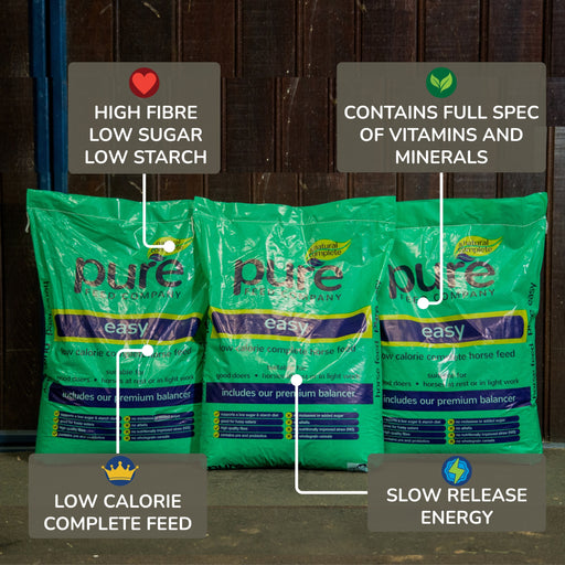 Pure Feed CompanyPure Feed Company Pure Easy provides slow-release energy for horses in work, but is low calorie so doesn’t encourage weight gain. It is high in fib...