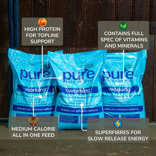 Pure Feed CompanyPure Feed Company Pure Working is ideally formulated for horses in regular work such as taking part in riding club activities and competing. It is ...