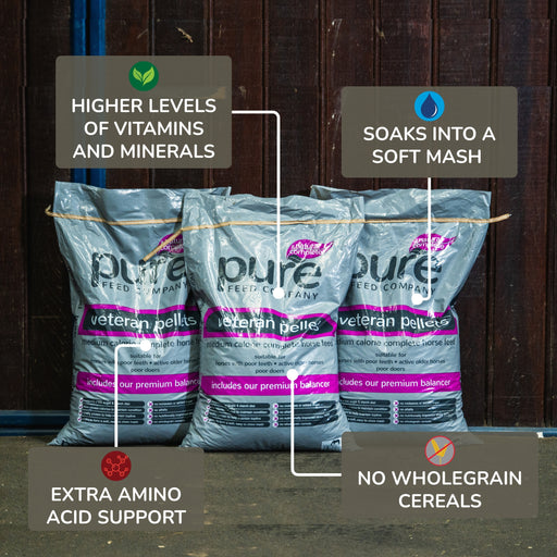 Pure Feed CompanyPure Feed Company Pure Veteran Pellets are ideal for older horses that require a mash. Packing the same nutritional value as a mix, but served in a...