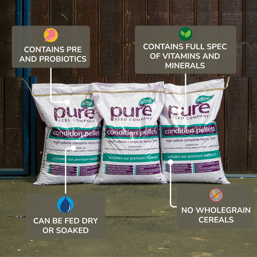 Pure Feed CompanyPure Feed Company Pure Condition Pellets are designed to improve the condition of fussy horses without making them excitable. Because oil is the ma...