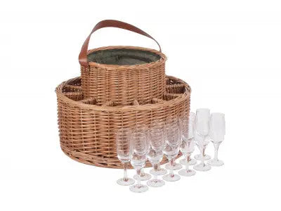 Willow DirectCHILLED GARDEN PARTY BASKET Full antique wash finish willow - zipped chilled compartment - including 12 champagne glasses CONTENT 12 champagne gl...