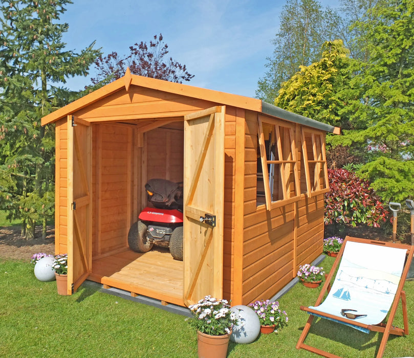 The Bison is a high quality hand made workshop and every feature sets the building apart from others. The framing is a mighty 70x44mm (3"x2"), significantly larger than even our standard framing giving the building immense strength. The doors are fully framed and braced and they are fitted with a full length piano hinge for added security. A lock and key is also provided. The high grade 12mm shiplap cladding provides much improved weather proofing and longevity. The internal working height is a minimum of 6 feet at the eaves giving a really comfortable working environment for the vast majority of people; again this is significantly higher than much of the cheaper competition.