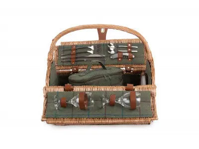 Full light steamed finish willow - tan real leather - removable cooler bag - stainless steel cutlery